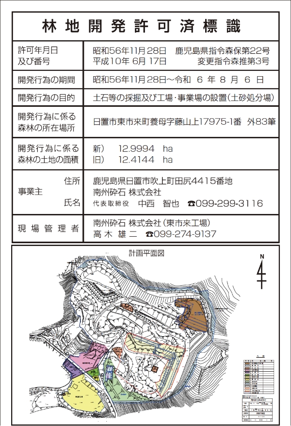 東市来工場岩石採取標識